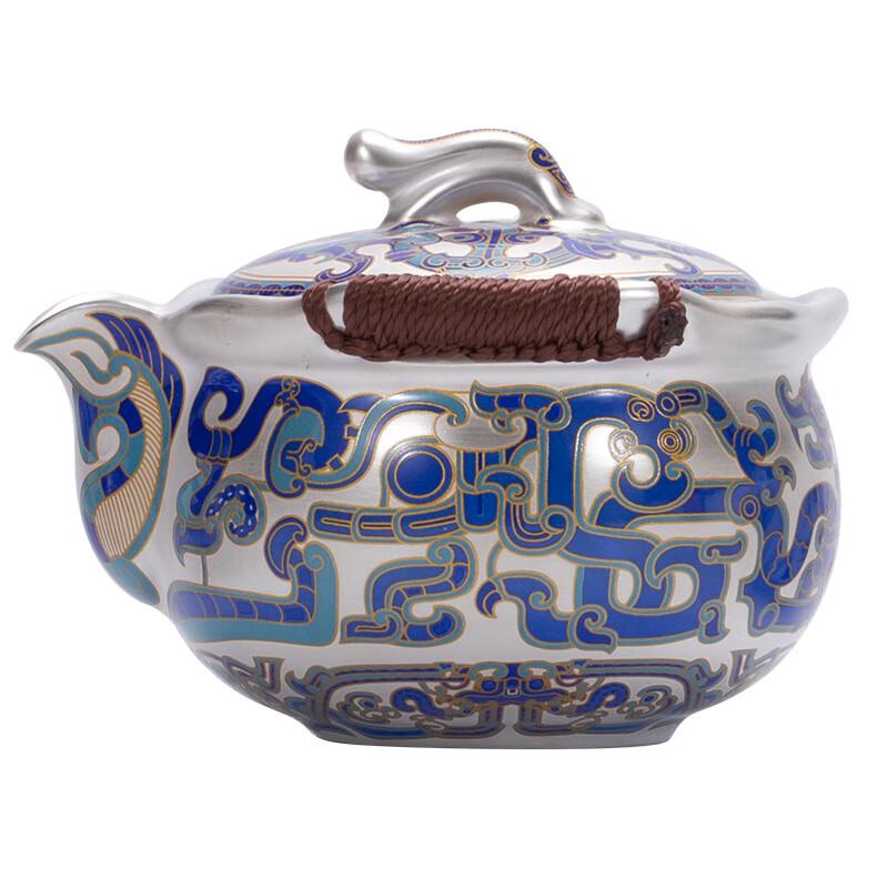 Shangqi Gilded Silver Taotie Ceramic Teapot