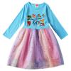 9191 Детское Девочки Украсть Мозговую Гниль 67 Шесть Семь Принт Длинный Рукав Хлопок Повседневный Блестки Радуга Платье