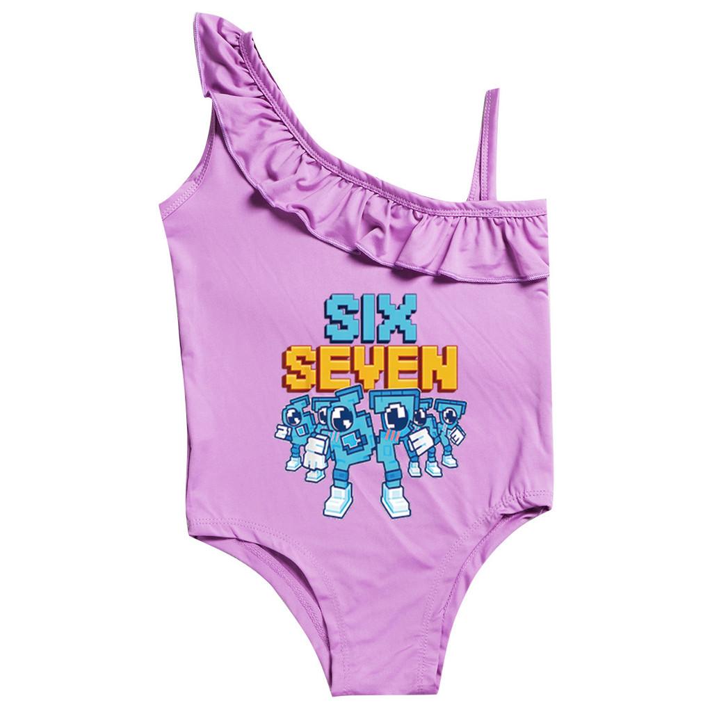 9193 Детский для мальчиков девочек Украсть мозг 67 Шесть Семь Принт Рюши Купальник Купальный цельный боди Купальник