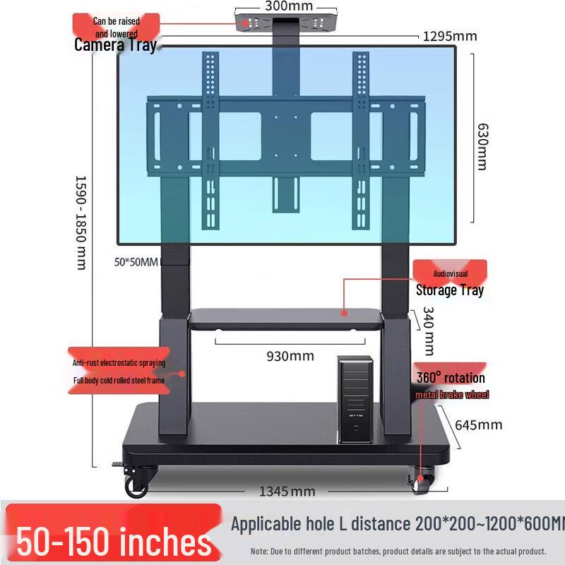 Передвижная напольная подставка для телевизора на колесиках с двойными полками