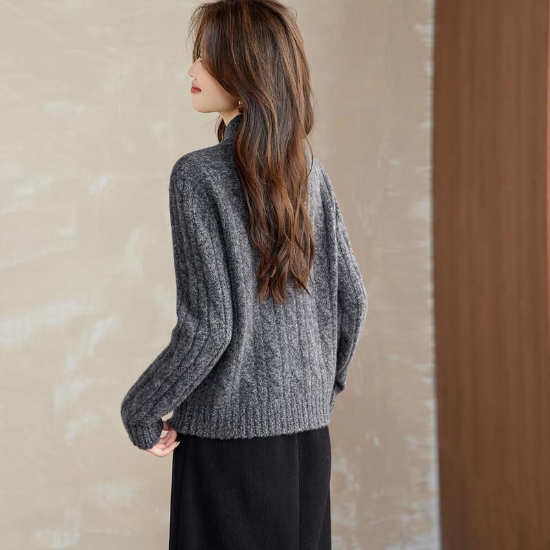 Srcr Women's 100% Wool Cable Knit Half-Zip Sweater