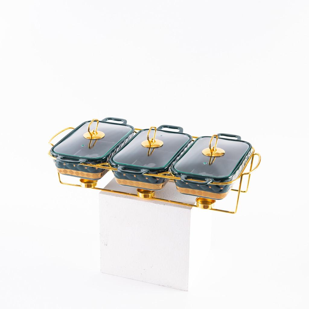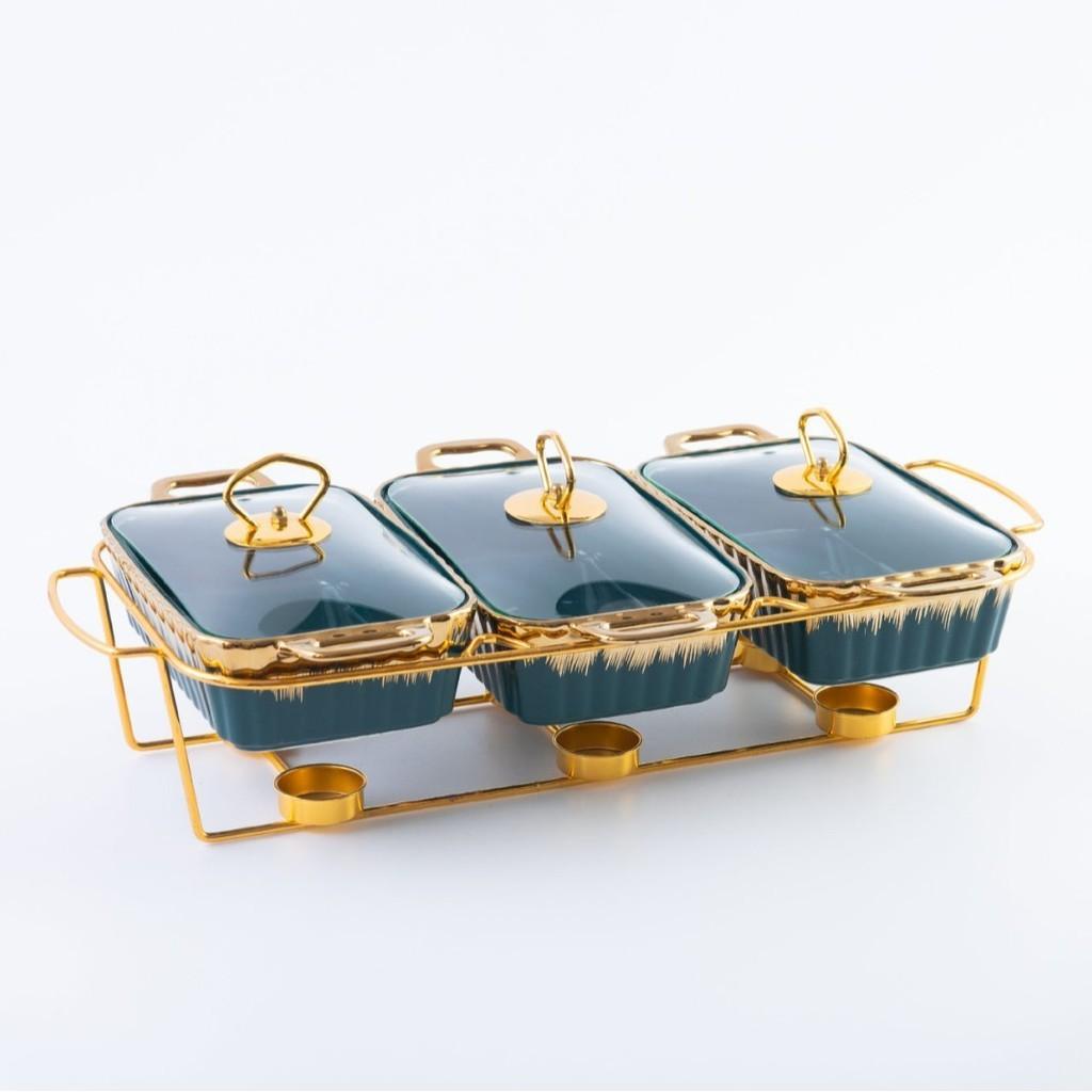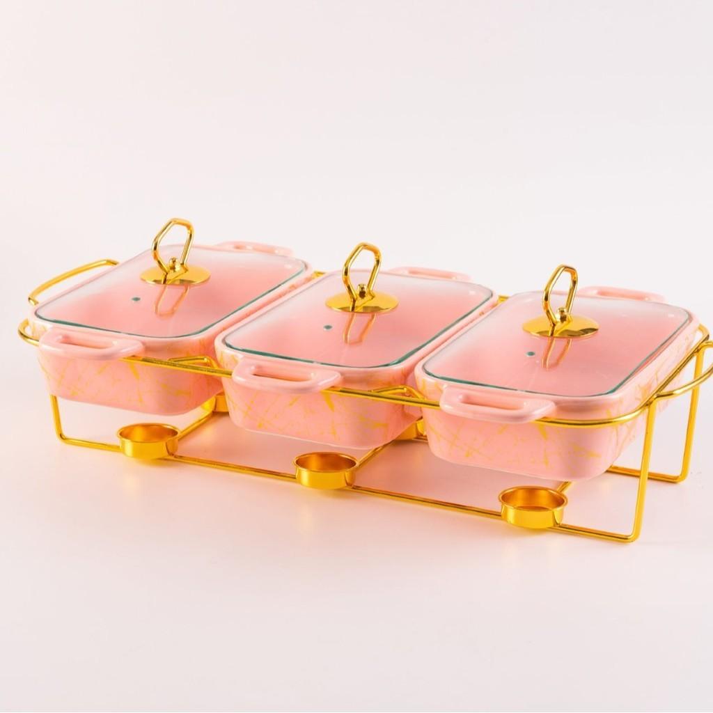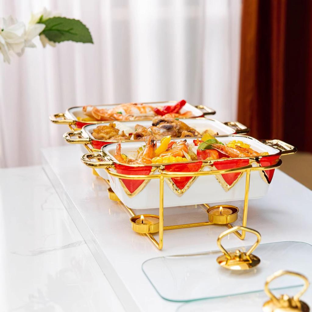 Металлическая полка Отель Ресторан Расписанная вручную Кастрюля для супа Кастрюля для сухого супа Набор посуды Трехсекционная прямоугольная керамическая тарелка Кастрюля для супа
