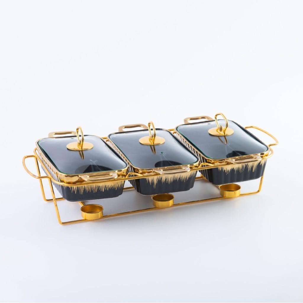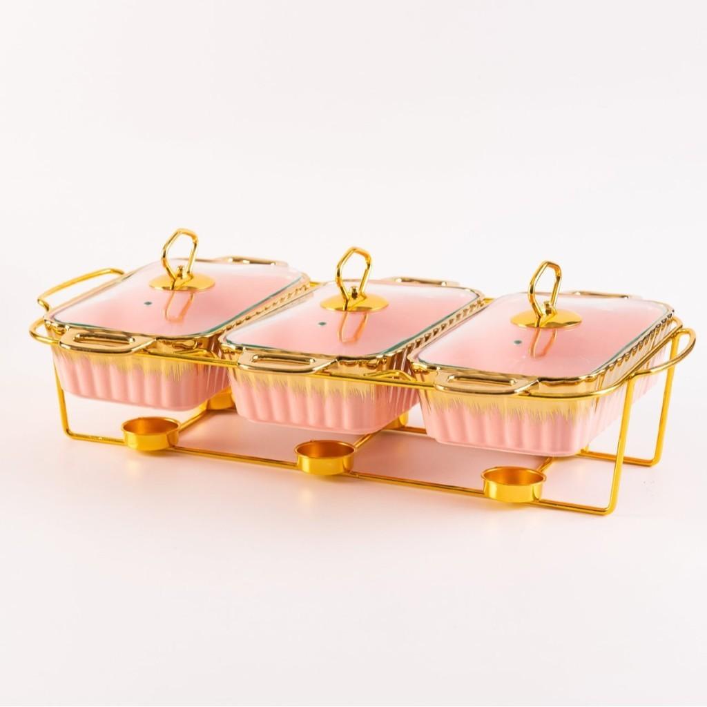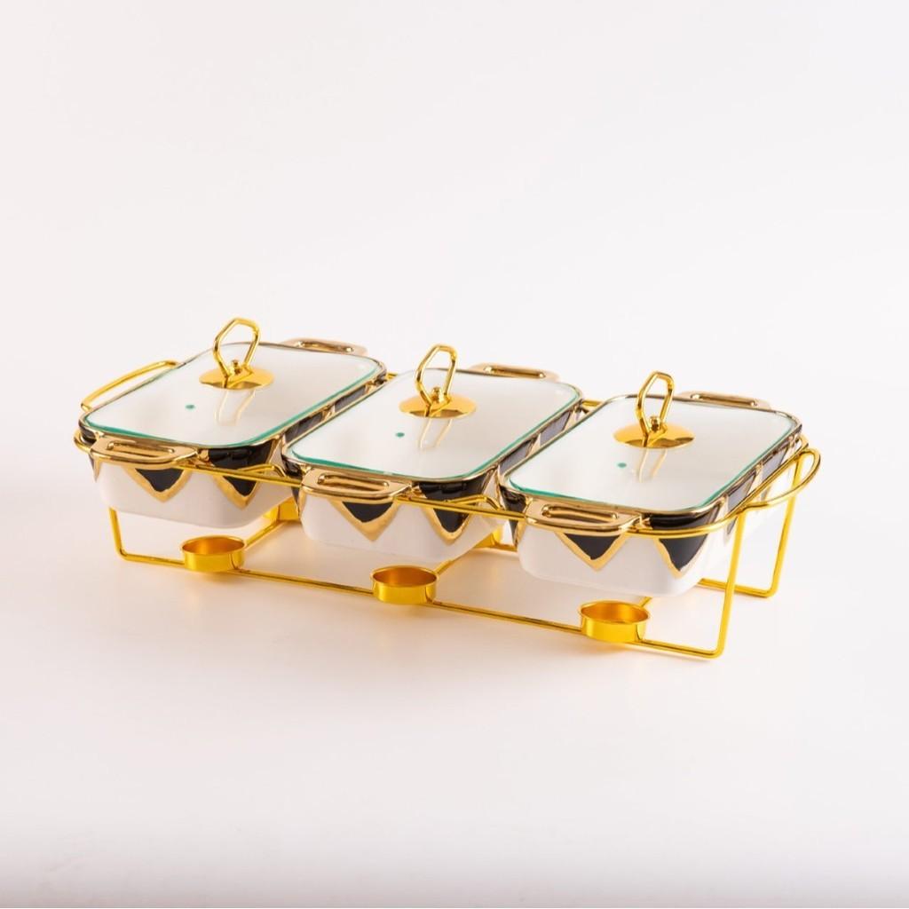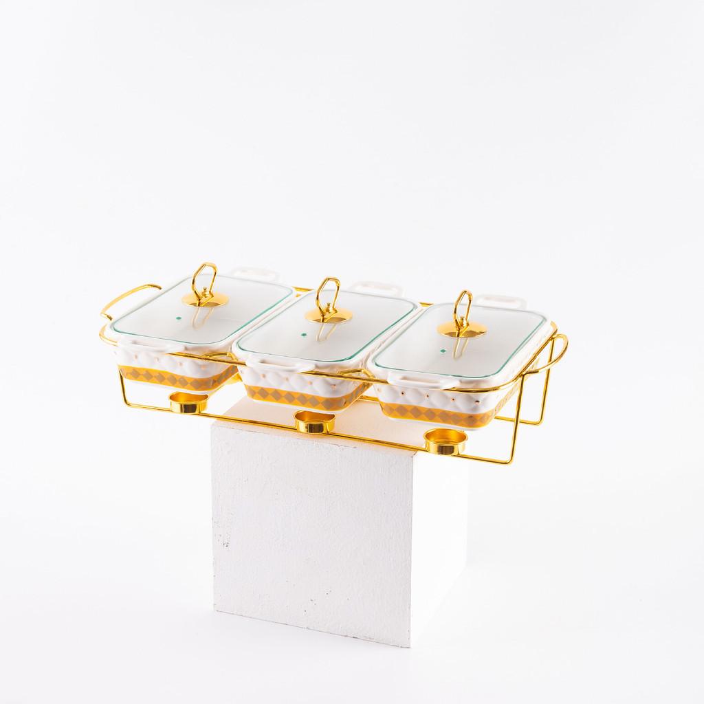 Металлическая полка Отель Ресторан Расписанная вручную Кастрюля для супа Кастрюля для сухого супа Набор посуды Трехсекционная прямоугольная керамическая тарелка Кастрюля для супа