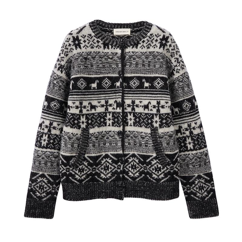 ЗЕЛЕНЫЙ ПОЯС Женский кардиган в стиле ретро Fair Isle из чистой шерсти
