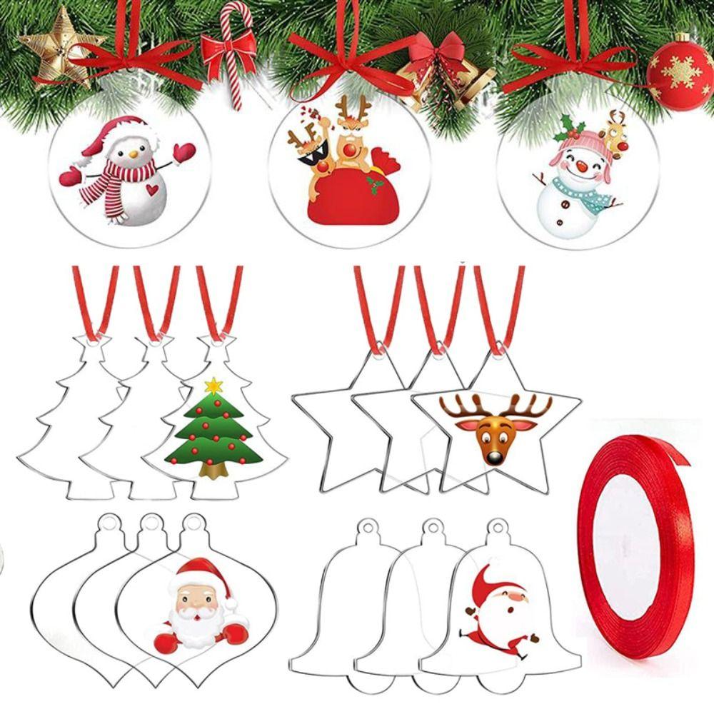 Package Includes: 10 pcs Acrylic Ornaments+2-3m red ribbon