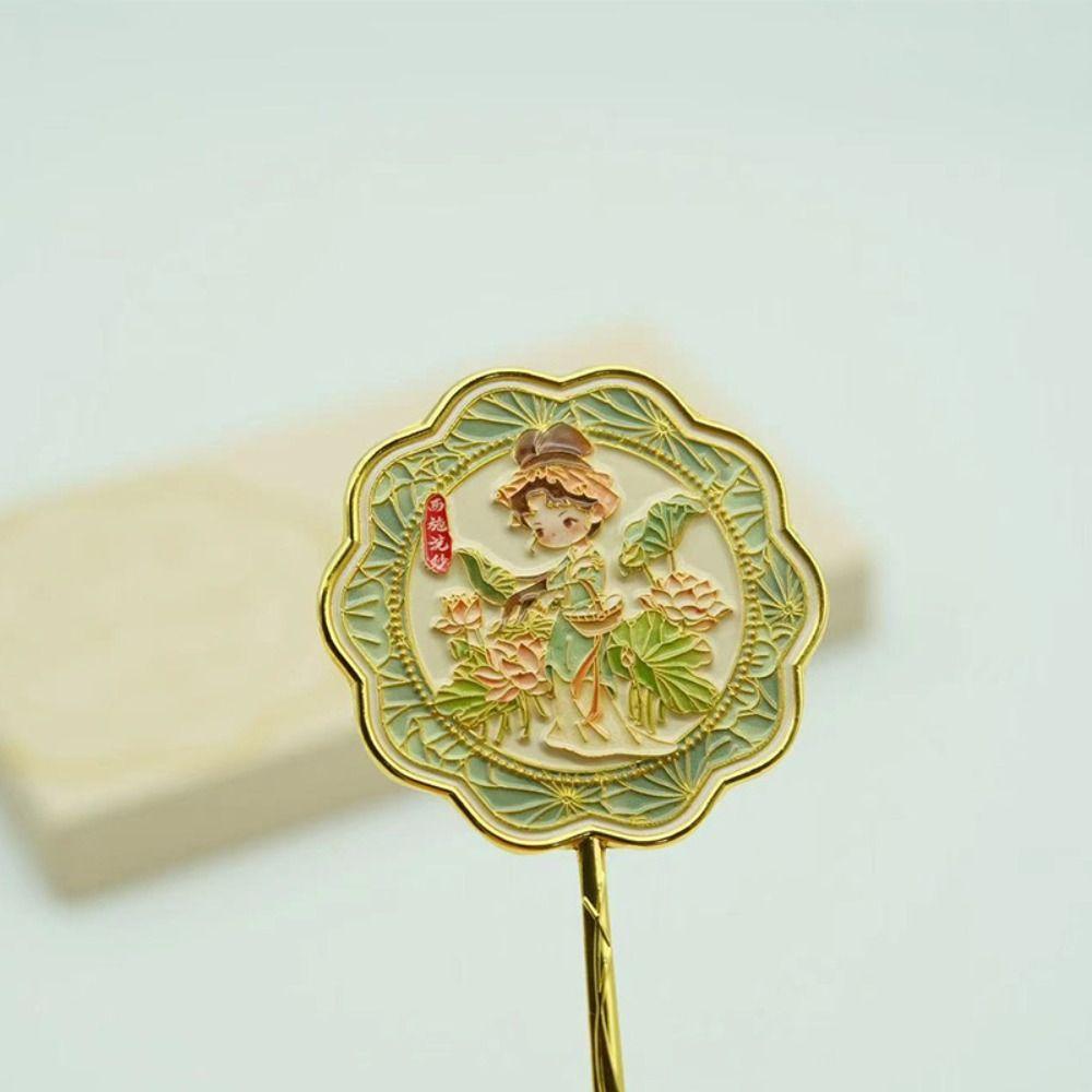 Textured Chinese-style Handheld Mirror Flower Cartoon Makeup Mirror Metal Cosmetic Mirror Gift
