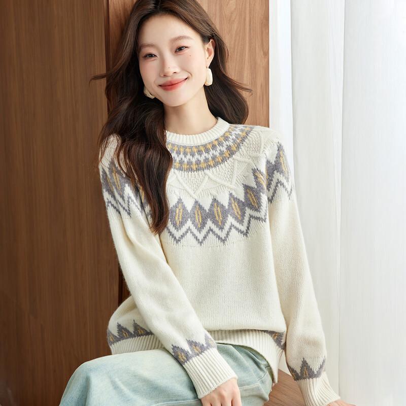 Srcr Women's Fair Isle Jacquard 100% Wool Sweater