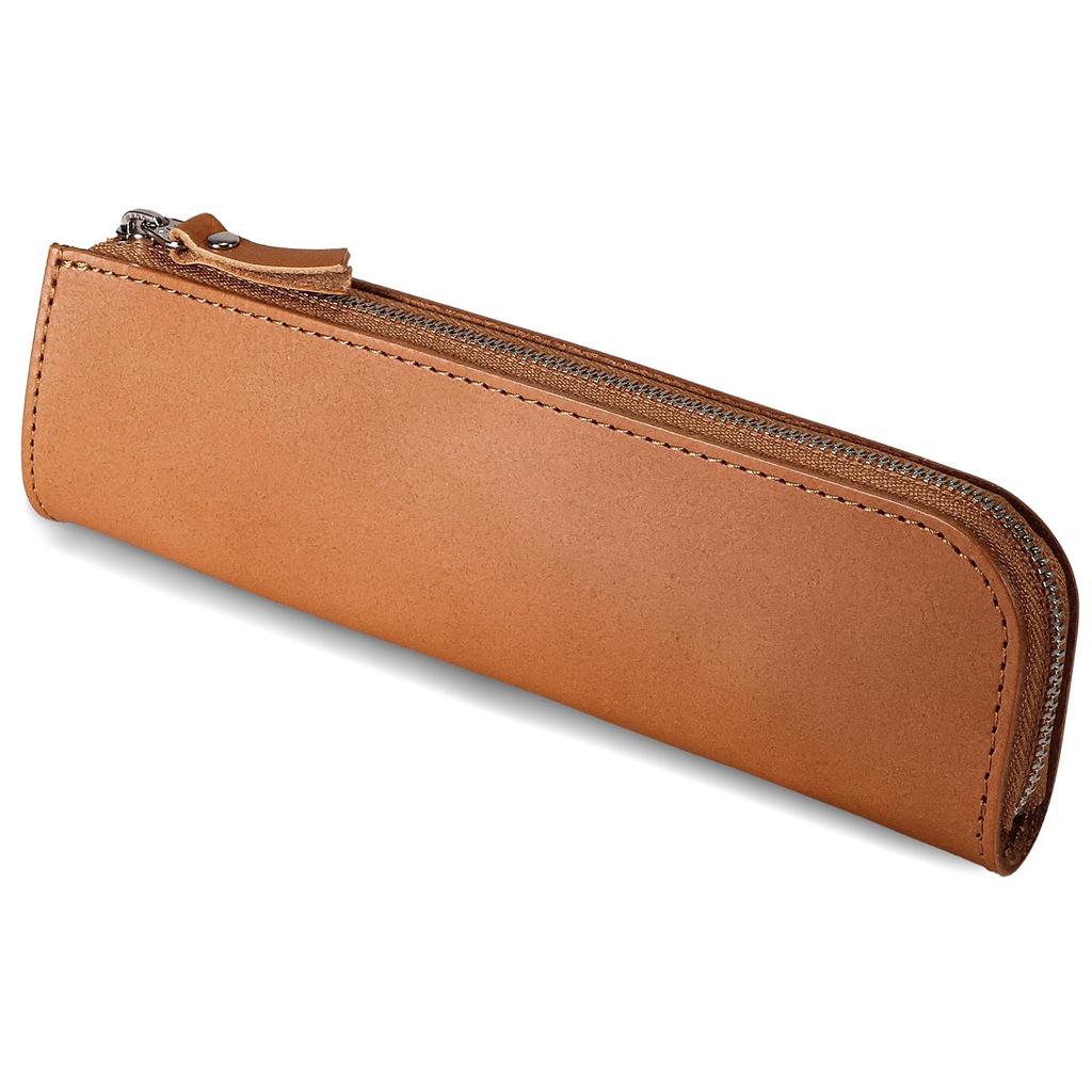 Rioboca Пенал из натуральной кожи, Сделано в Японии из кожи Химедзи, Простой дизайн на молнии (Светло-коричневый)