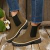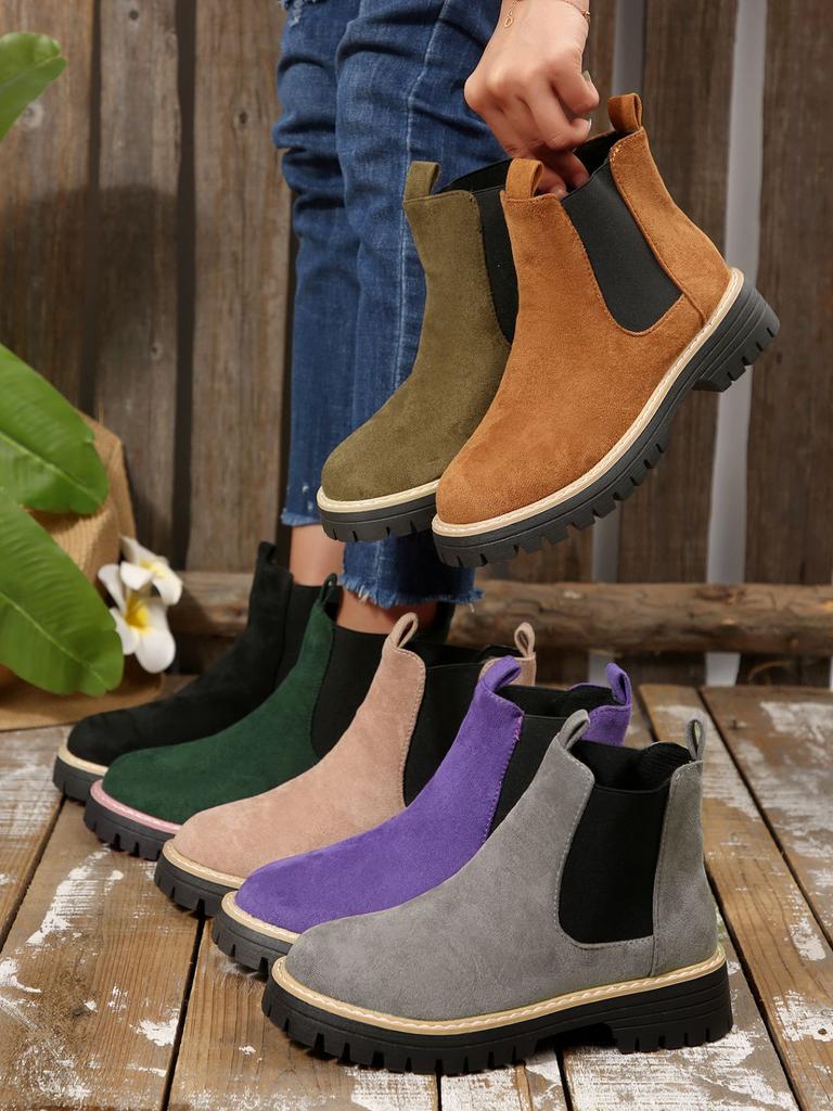 Женские Сапоги Повседневные Замшевые Натяжные Сапоги На Грубой Подошве Удобные Сапоги Осень Зима Короткие Ботильоны Круглый Носок Массивные Блочные Каблуки Обувь для Повседневной Носки