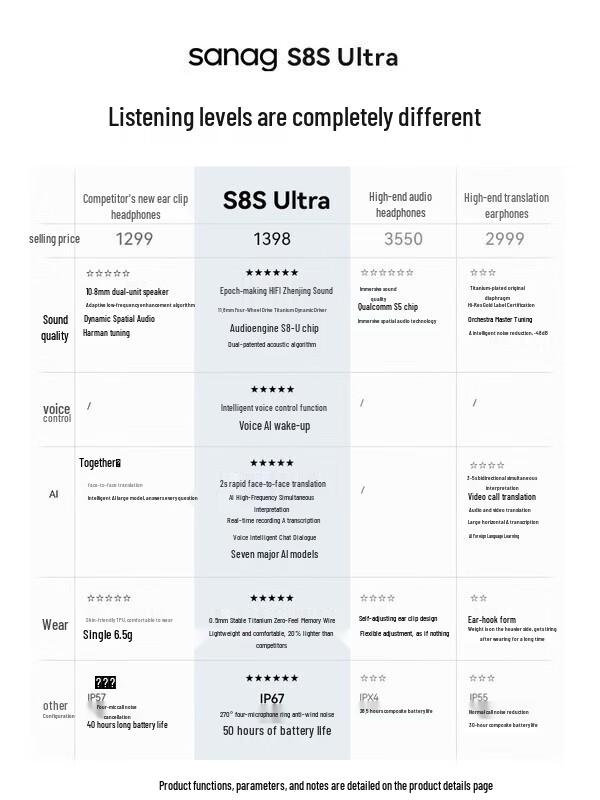SANAG S8S Ultra Open-Ear AI Translation Sports Earphones