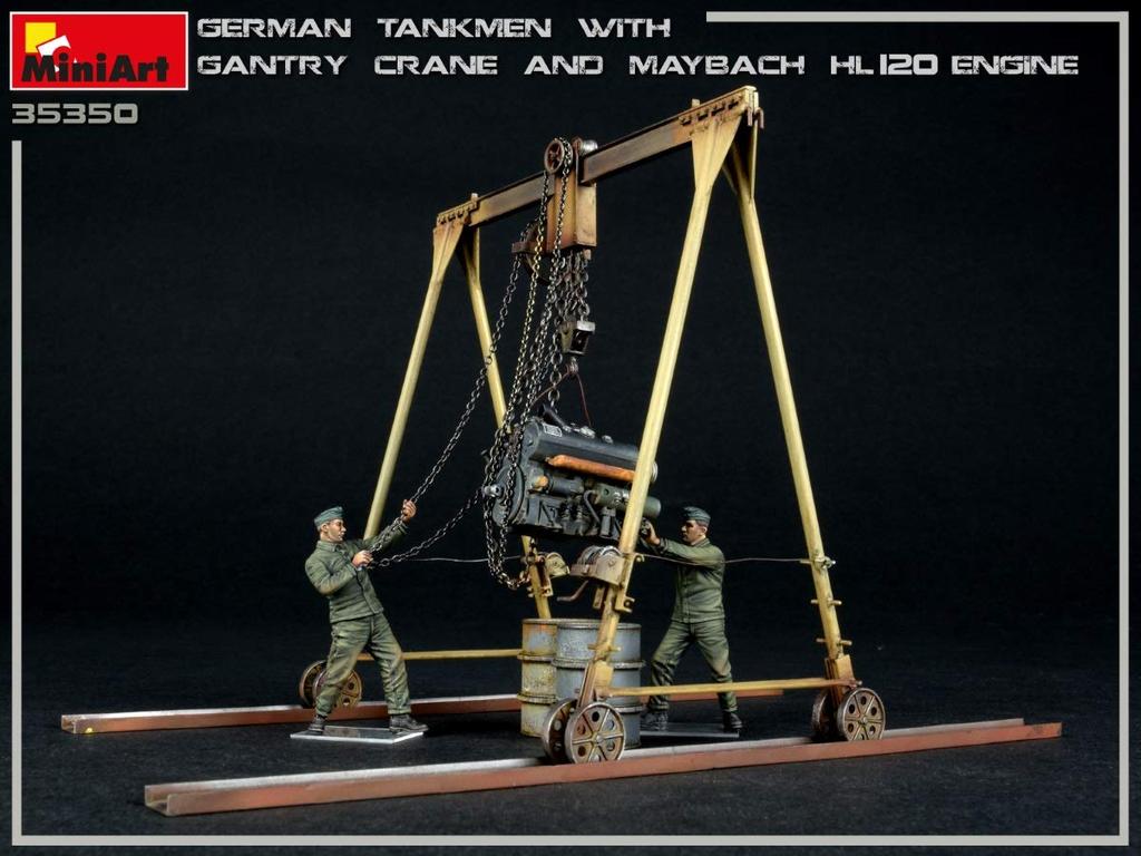 Miniart 1/35 Scale German Tank Crew (2 Figures) with Gantry Crane and Maybach HL120 Engine, Plastic Model Kit MA35350
