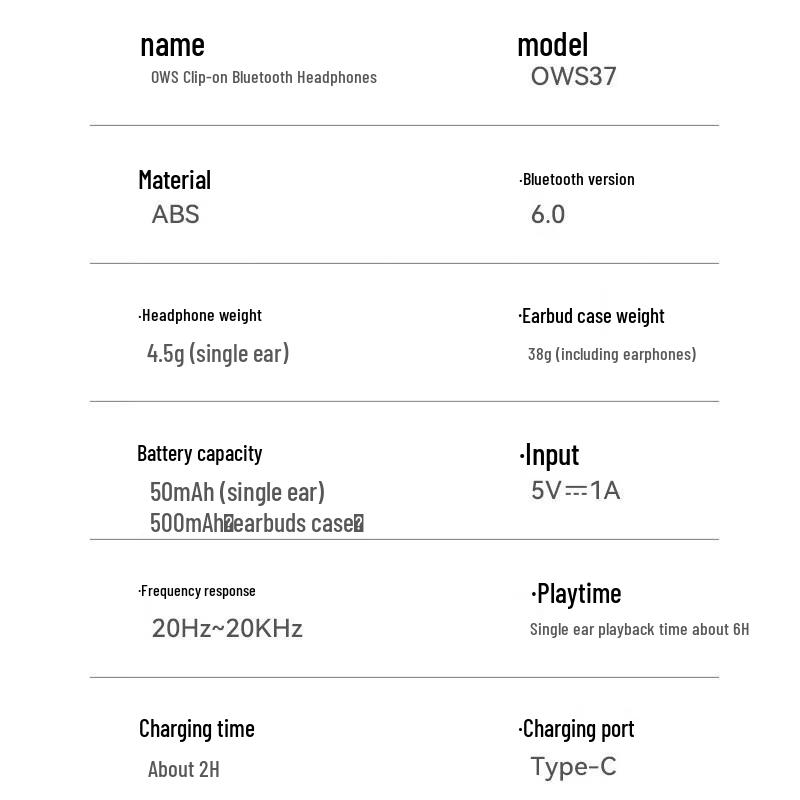 WOPOW OWS Bluetooth-наушники с открытым ухом и клипсой