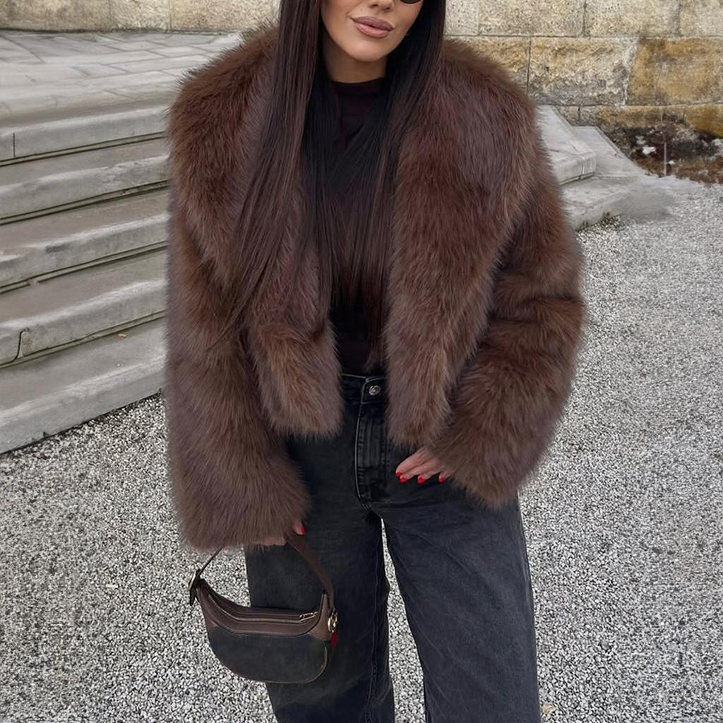 Плюшевое пальто-ветровка в курортном стиле с длинным рукавом для женщин на осень и зиму 2025 года