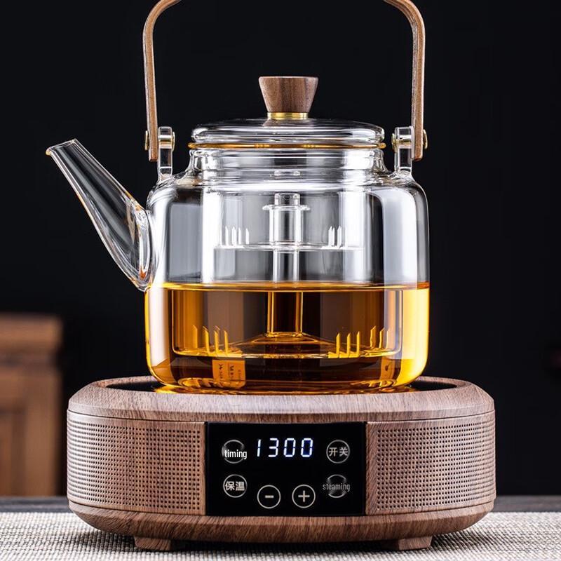 МодельПрозрачный двухслойный чайник с ручкой из грецкого ореха