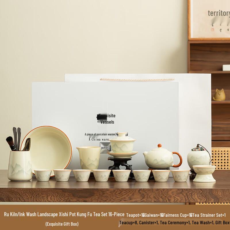 Chaxun Ru Kiln Ink Landscape Kung Fu Tea Set