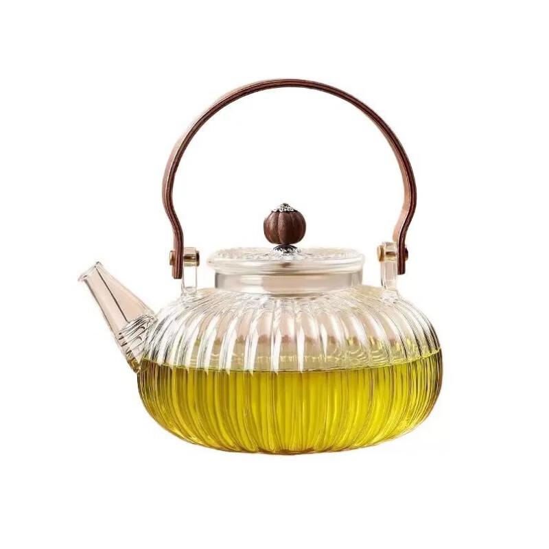 Тыквенный чайник с ручкой-лучом из высокоборосиликатного стекла