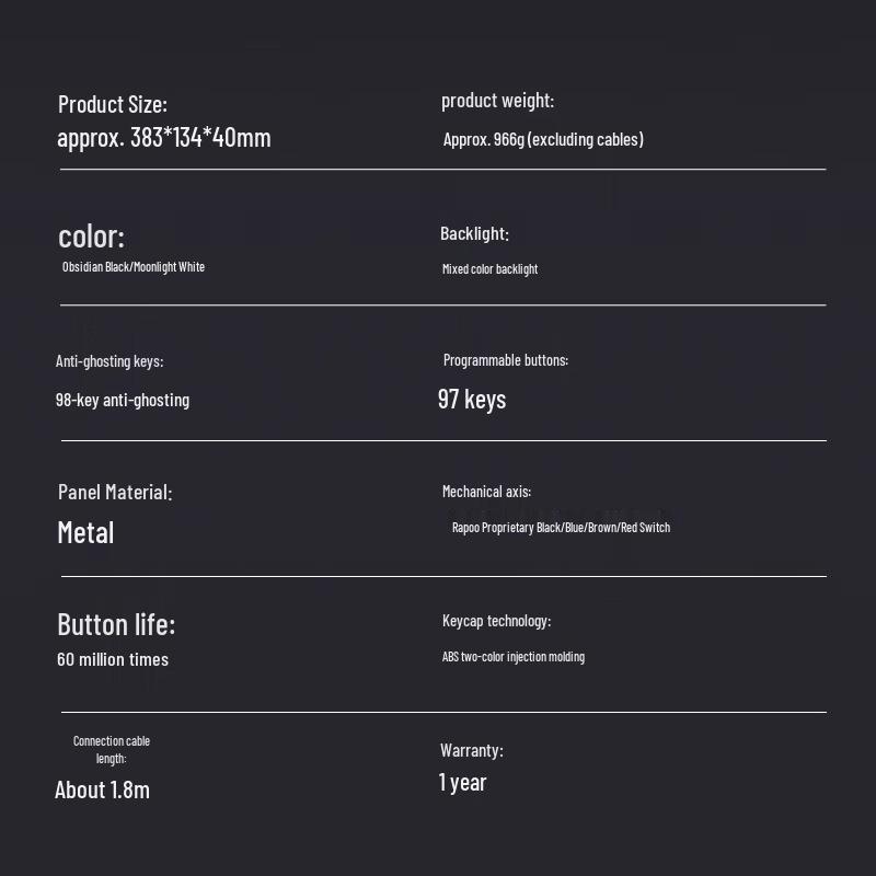 Rapoo V500PRO-98 Upgrade 98-Key Wired RGB Mechanical Gaming Keyboard