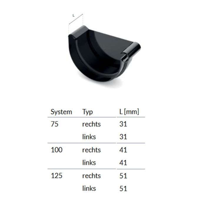 Embout de Gouttière Gauche Graphite Système 125 - Protection Optimale