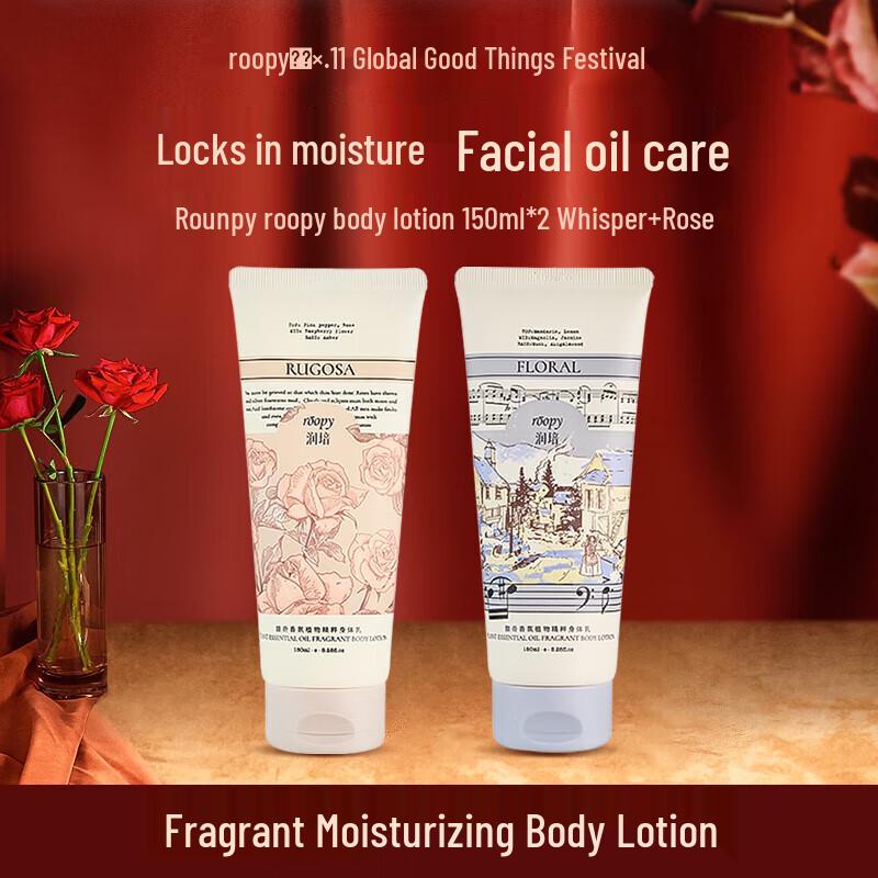 This body lotion offers deep moisturization and nourishment, leaving skin soft and smooth. It features a long-lasting fragrance, providing a delightful sensory experience. This twin pack includes two distinct scents, Winter Whisper and Nameless Rose, each in a 150ml bottle. Ideal for daily body care to keep skin hydrated and radiant.