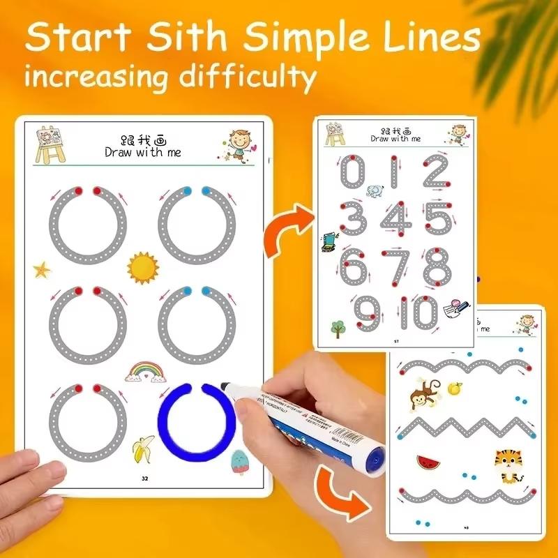 Волшебная пропись, многоразовая тетрадь для каллиграфии, книга для практики рисования, обучение малышей, детская игрушка для рисования Монтессори