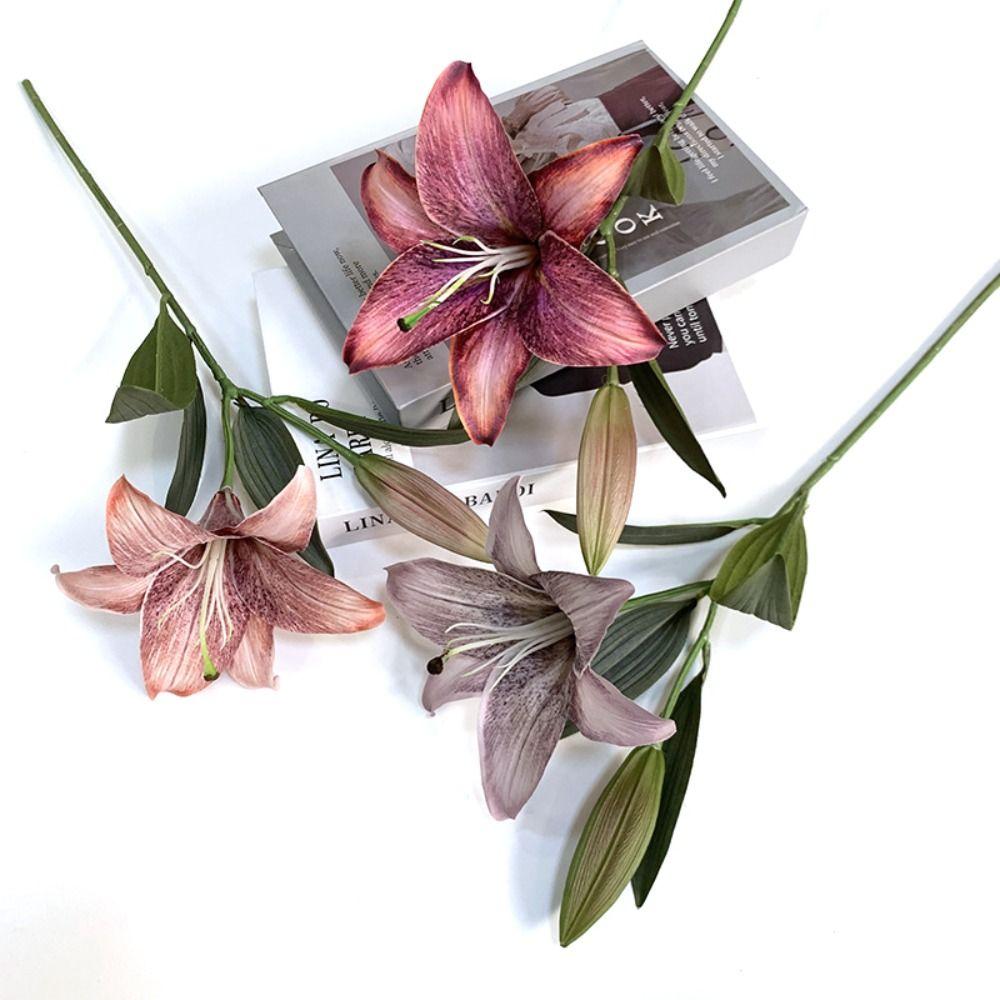 Сад Сделай сам Цветочный Многоцветный Элегантный 3D-печать Искусственный Цветок Искусственные Лилии Поддельные Растения Букеты