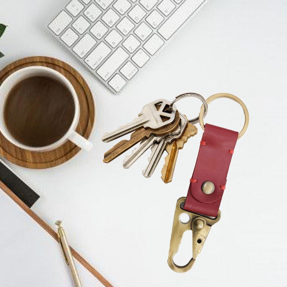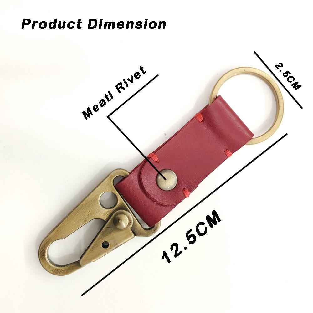 RSINC Брелок из натуральной кожи ручной работы | Металлическая фурнитура | Отделка латунью Красный B0DSW8KJ6X