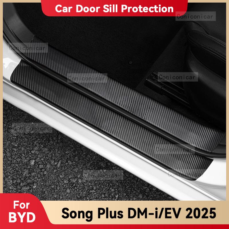 Наклейка на порог двери из углеродного волокна для BYD Song Plus DM-i EV 2025, накладка на порог, защита от царапин, аксессуары для интерьера