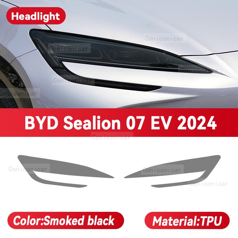 Для BYD Sealion 07 2024 Автомобильная фара Задымленная Черная Защитная пленка из ТПУ Передний свет Тонировка Изменение цвета Наклейка Аксессуары