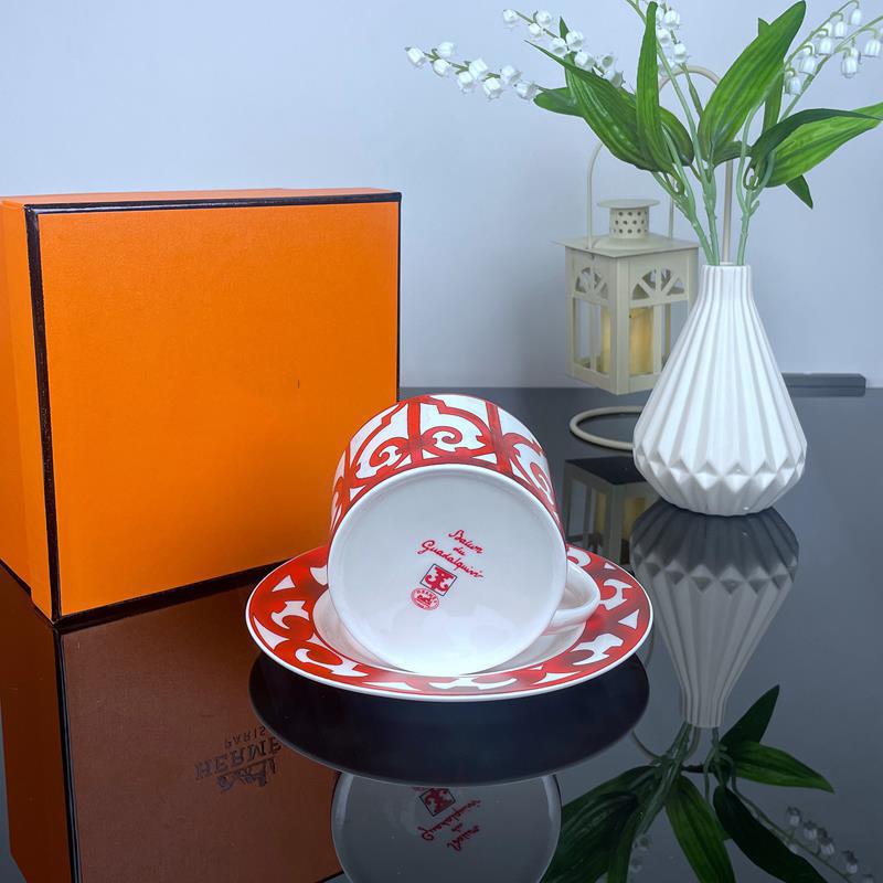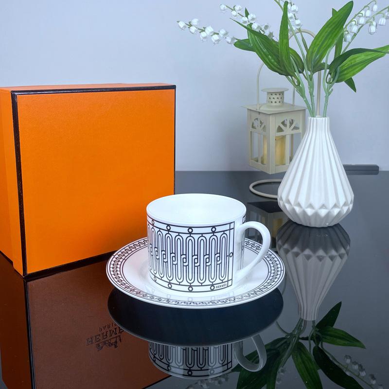 Кофейная чашка и блюдце из костяного фарфора H Домашний набор Креативная чайная чашка с блюдцем Бытовая Простой цветочный чай Керамика Домашняя Свадебная