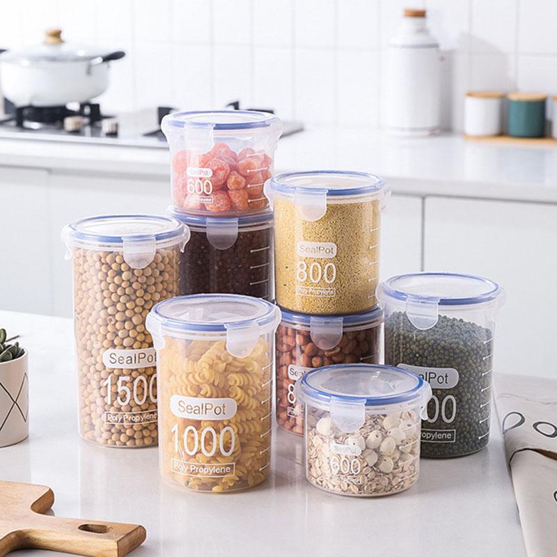 Пищевые герметичные банки, банки для хранения свежести в холодильнике, пластиковые банки для зерна, герметичные банки разных размеров с крышками