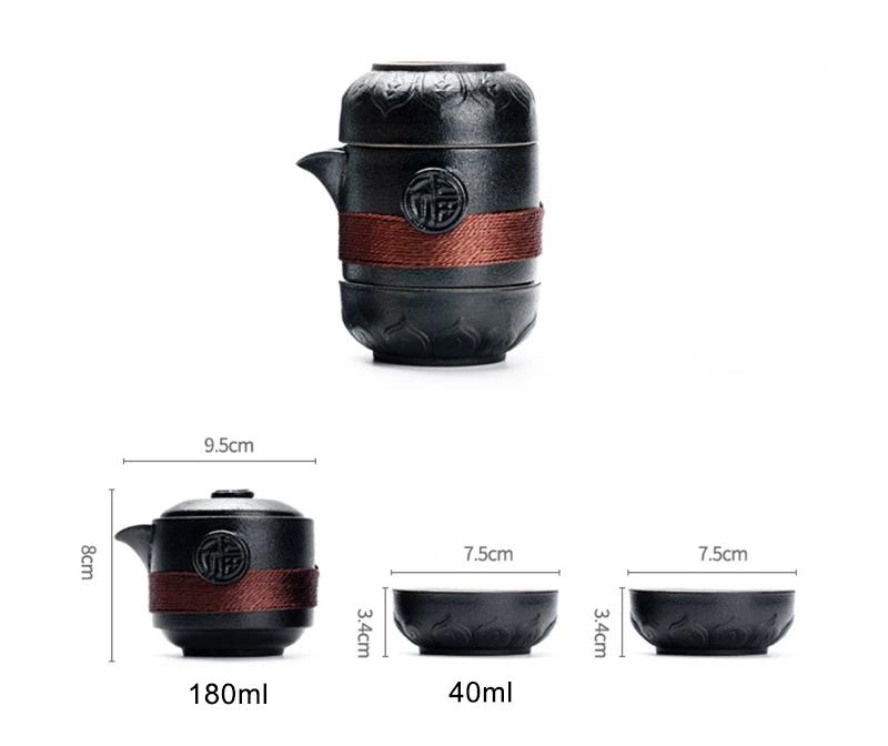 Дорожный чайный набор черная керамика портативная чайная посуда включает 1 шт. чайник 2 шт. чашки 1 шт. гайвань 1 шт. сумка кофейная посуда чайная посуда зеленые наборы чашек