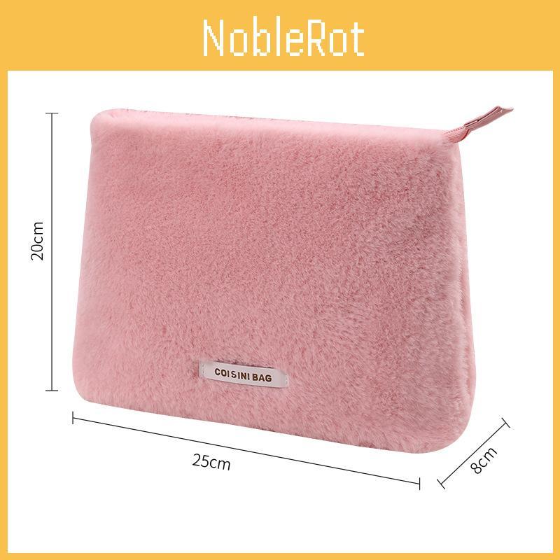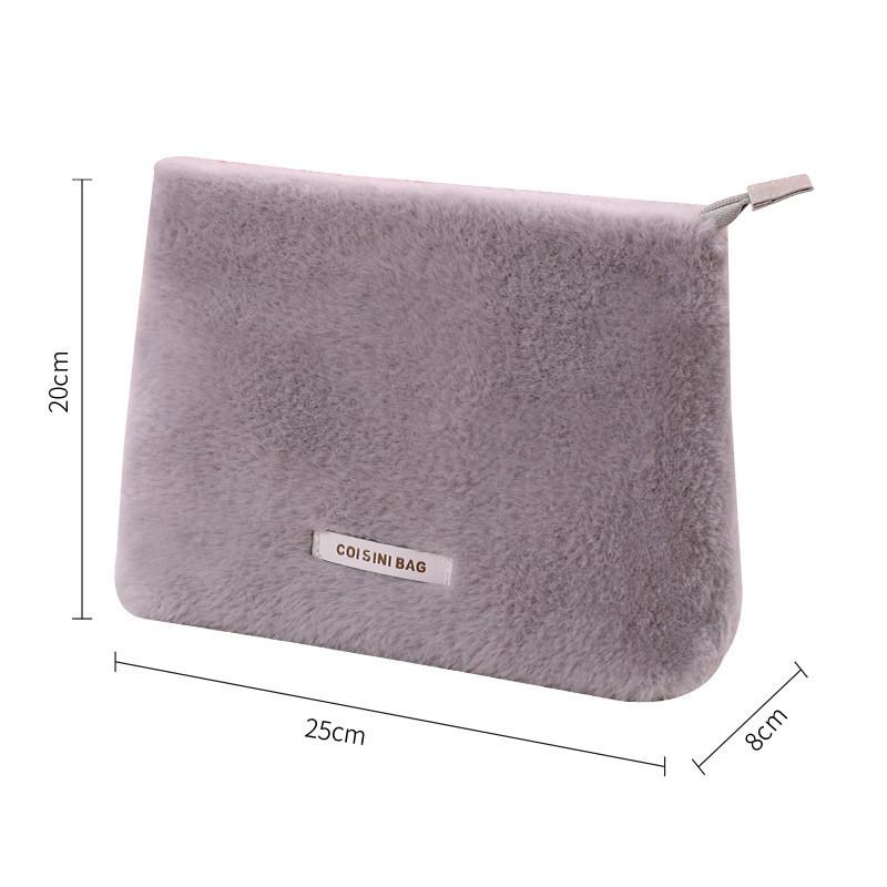Ins Style Plush Portable Makeup Organizer Faux Rabbit Hair Clutch Cosmetic Bag Wholesale