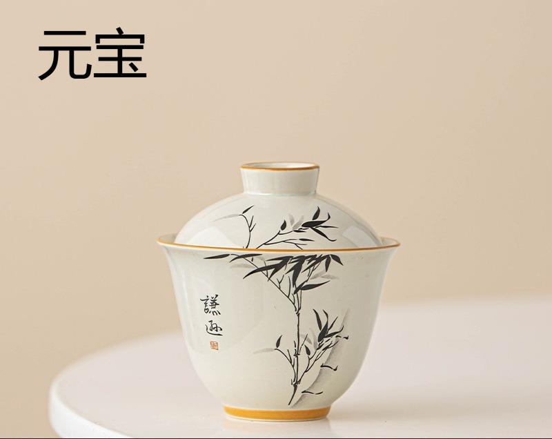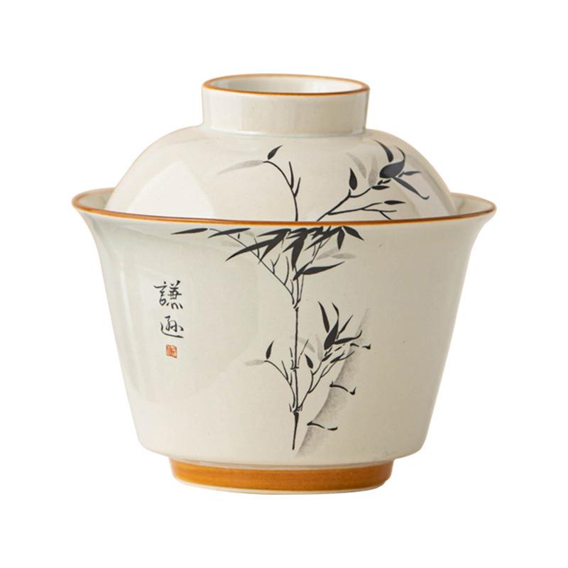 Растение и древесная зола Эркай крышка-чаша, тушь бамбук собирающий богатство с крышкой, чайная чаша керамическая питьевая чашка, одиночный чайный набор