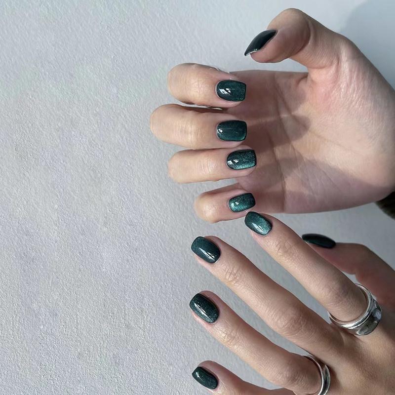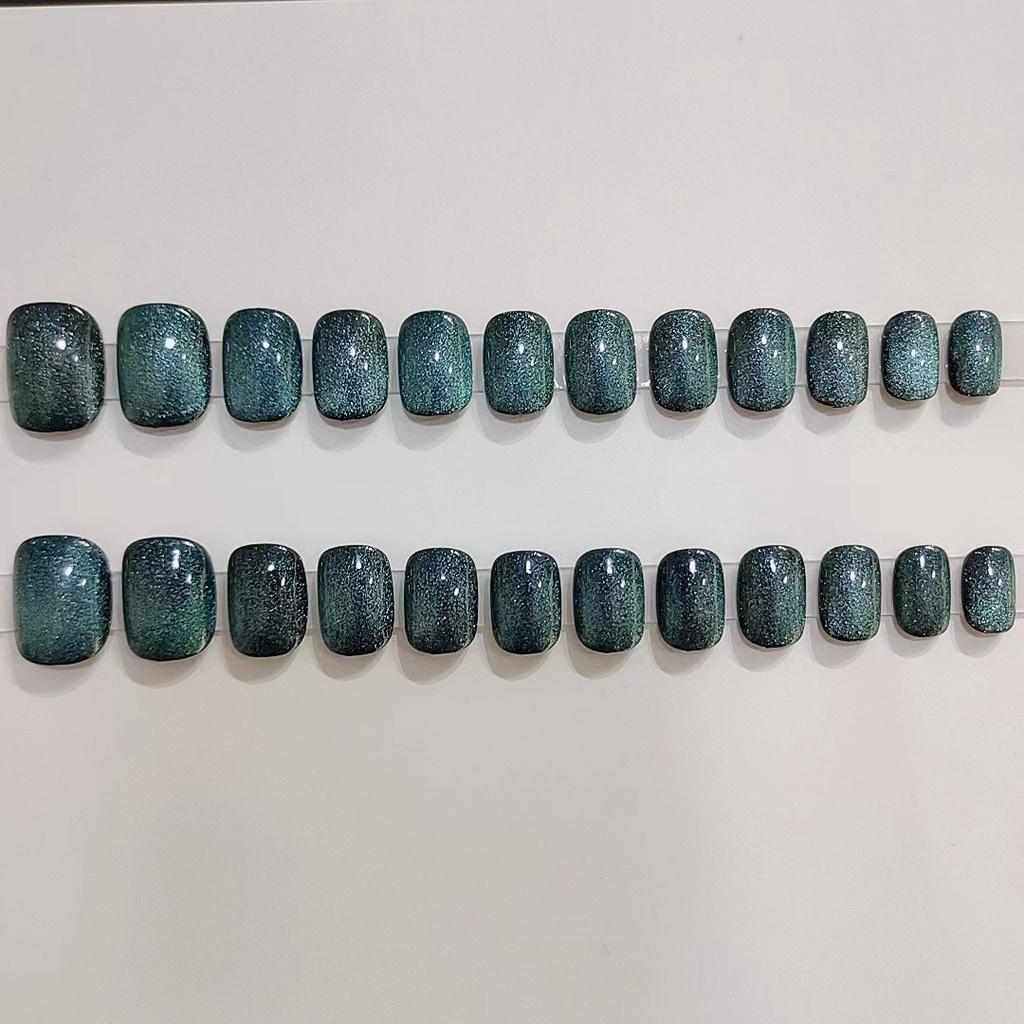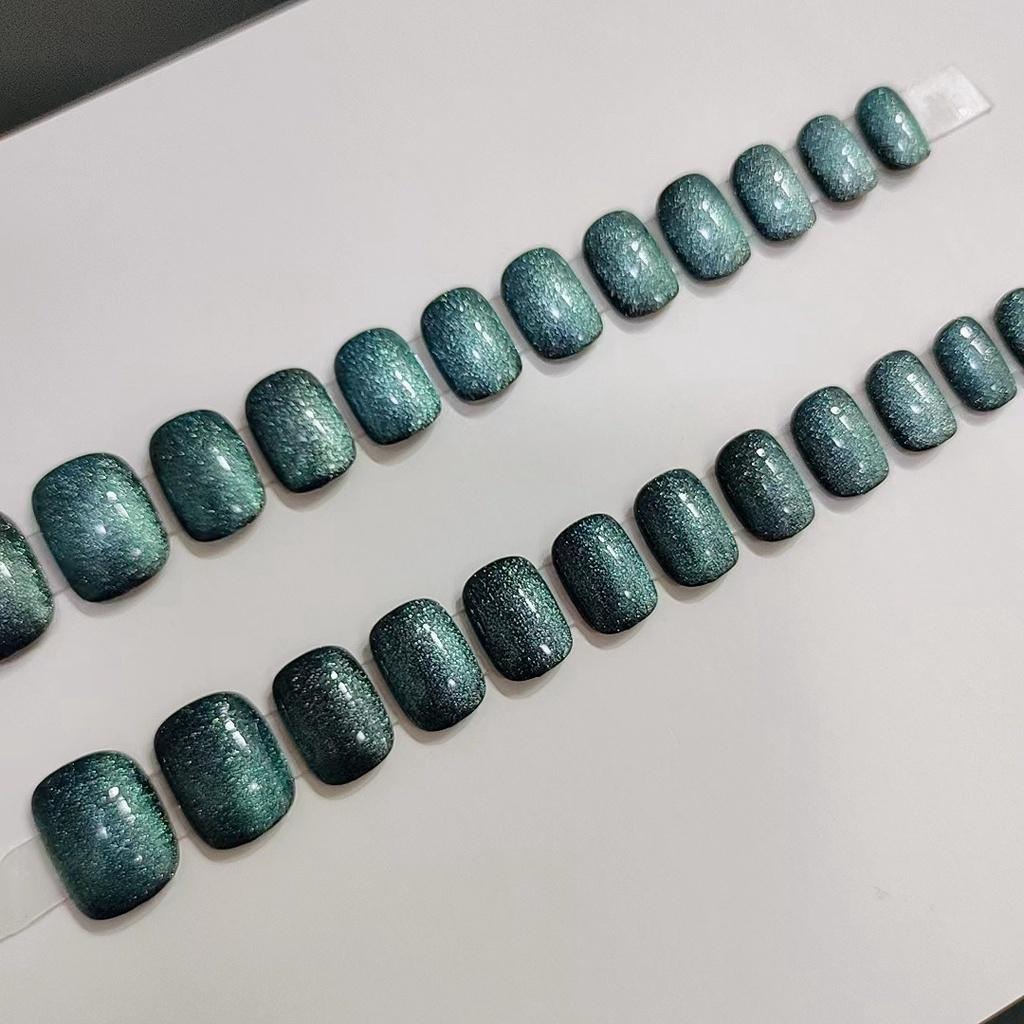 B662 Galaxy Cat Eye Short Blue-green Nail Wraps Stylish And Fashionable Nail Stickers