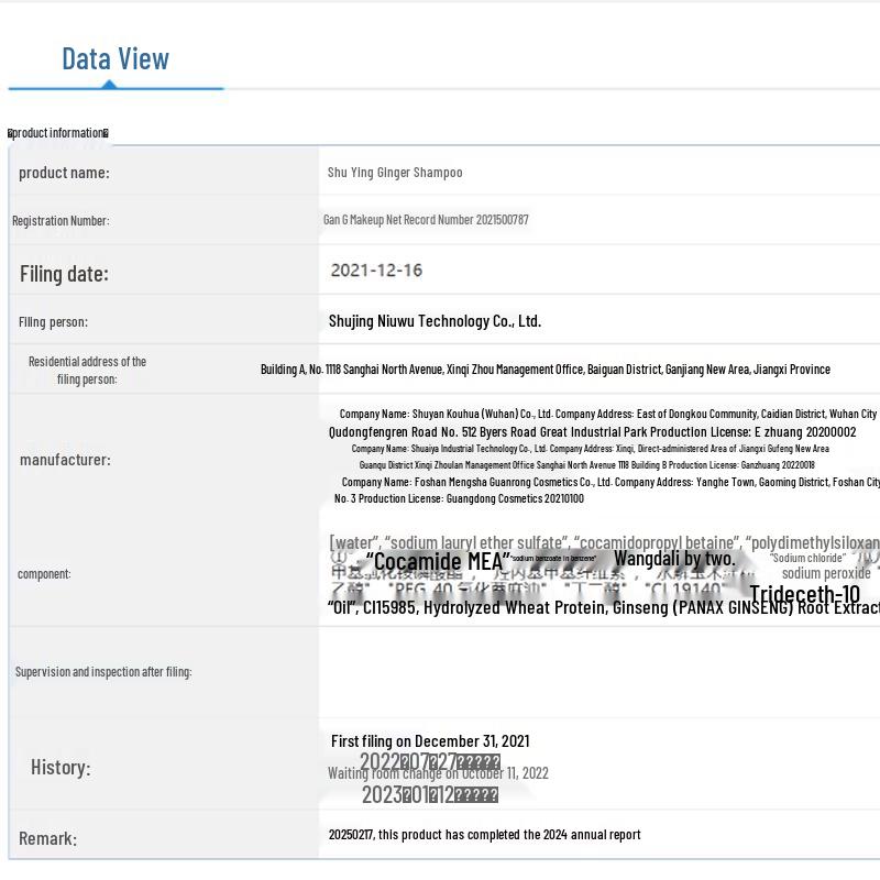 Product (registration/recordation) name: Shu Lei Silk Moisturizing Smooth Shampoo