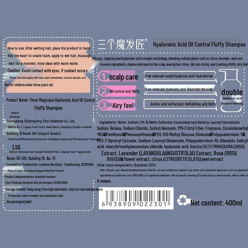 Product (registration/recordation) name: Three Magicians Hyaluronic Acid Oil Control Volumizing Shampoo