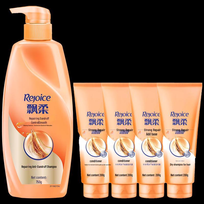 Experience comprehensive hair care with the Rejoice Ginseng Nourishing Anti-Dandruff Set. This powerful duo is designed to combat dandruff, control oil, and deeply nourish your hair and scalp with the revitalizing essence of ginseng. Enjoy flake-free, healthier-looking hair with a combination of deep cleansing and moisturizing. This set includes a 750g bottle of anti-dandruff shampoo and four 200g bottles of ginseng nourishing conditioner, providing a complete regimen for lustrous, manageable hair.