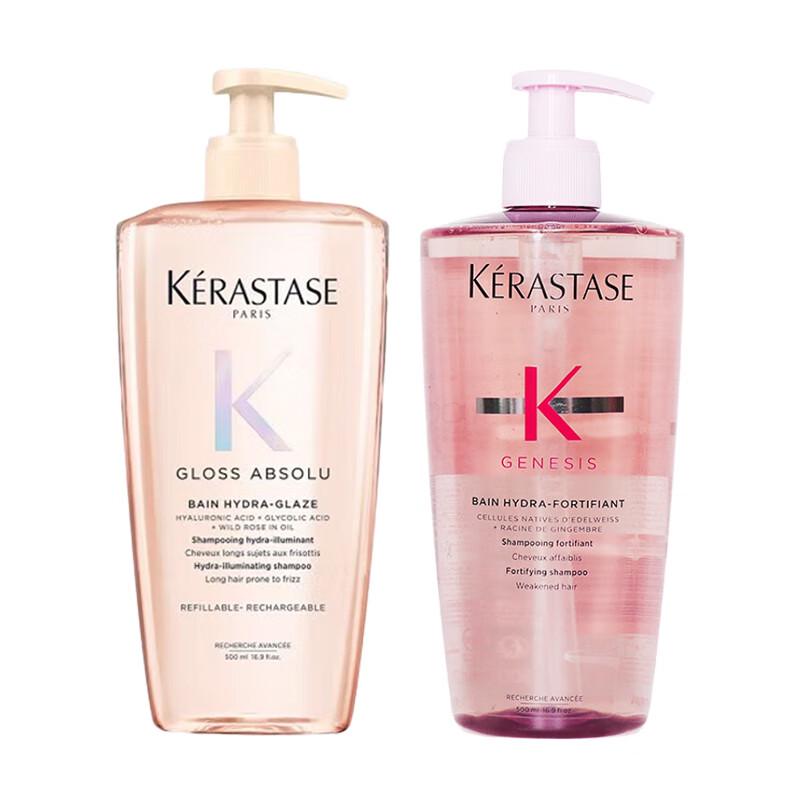 Experience luxurious hair care with the Kérastase Shampoo Set. This duo includes Glaze Rose Shine Shampoo and Genesis Fortifying Shampoo, both in 500ml bottles. Designed for damaged hair (e.g., from dyeing or perming 1-2 times) and suitable for various scalp types, it offers comprehensive benefits including hair care, deep moisturizing, and repair, ensuring a professional-grade treatment with a 3-year shelf life.