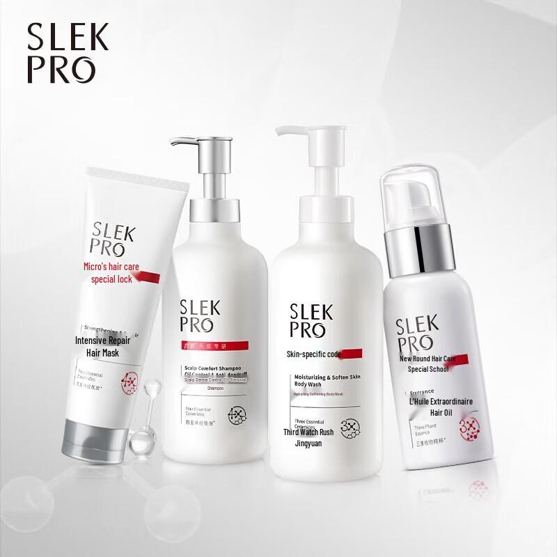 The SLEK PRO Scalp Care Gift Set is an expert solution for oily scalps. This comprehensive set includes shampoo, conditioner, and body wash, designed to soothe the scalp, control oil, and effectively combat dandruff, leaving your hair and body refreshed.
