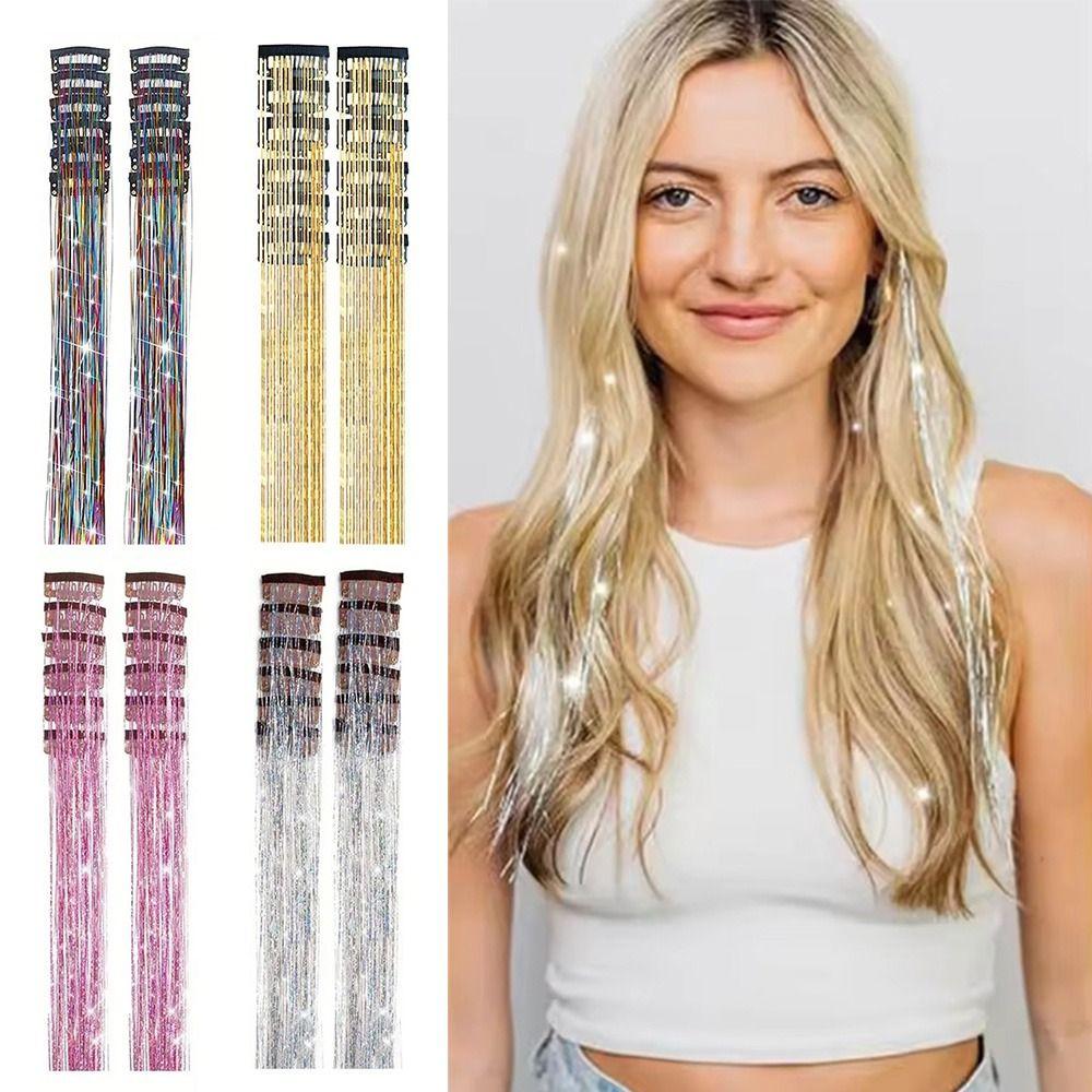 Heat Resistant Glitter Tinsel Hair Extensions Silk Hair String Extensions For Kids Girls Women