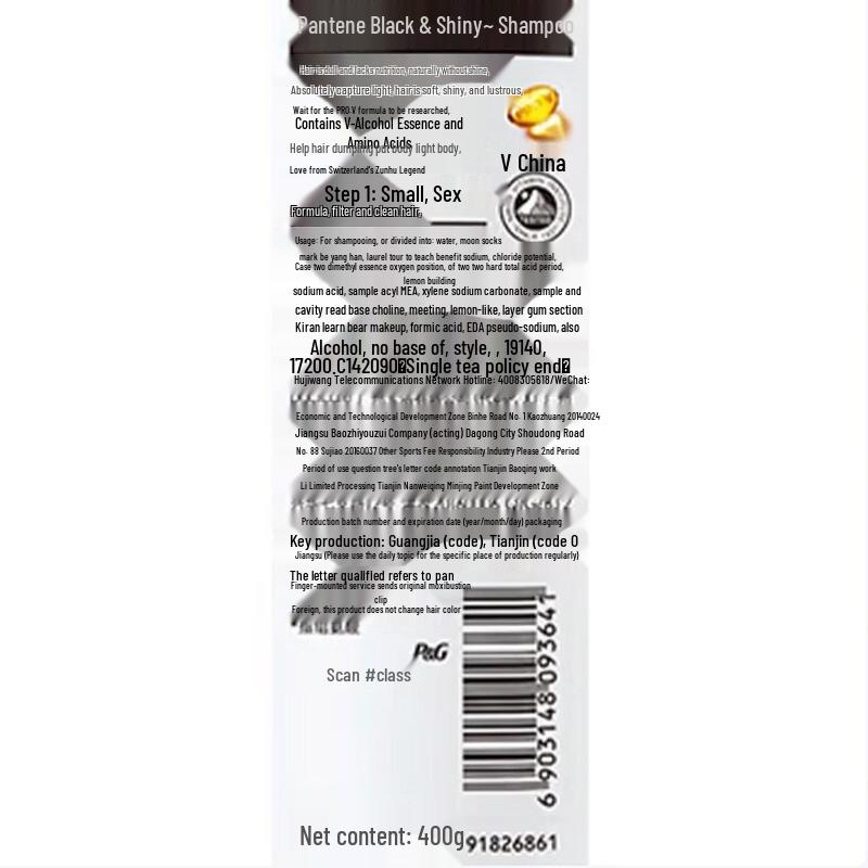 Pantene PRO-V Black Shine Shampoo is formulated to repair dull and lackluster hair, promoting a soft, shiny luster. This 400g shampoo is suitable for various scalp types and normal hair, offering benefits like smoothing, oil control, and overall hair care. Enjoy vibrant, healthy-looking hair with a 3-year shelf life.