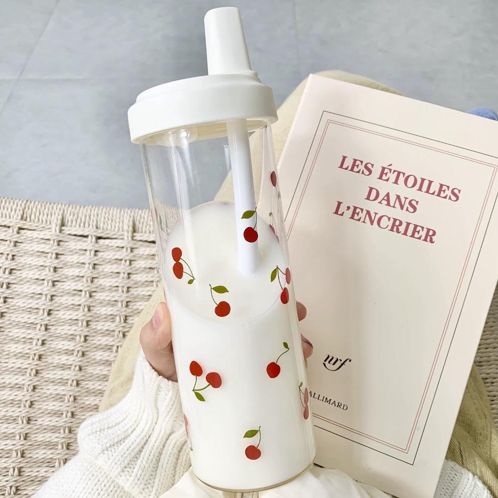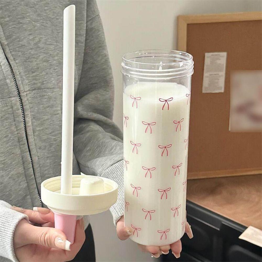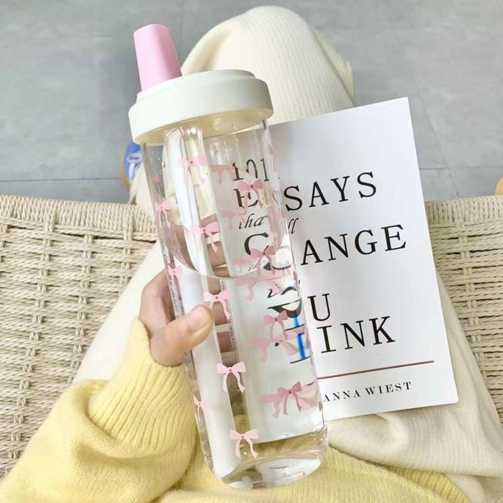 Bowknot Water Bottle 500ml Plastic Cups Portable Cup With Lid Straw Bubble Tea Coffee