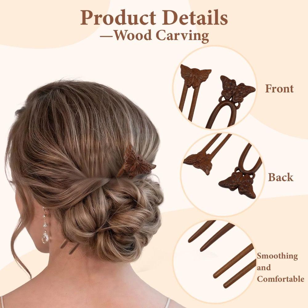 Vintage Style Wooden Hair Stick Wood Hanfu Hairpin Elegant Hairs Fork Bun Hairstyle