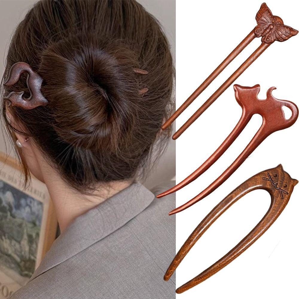 Vintage Style Wooden Hair Stick Cat Butterfly Flower Rabbit Deer Hanfu Hairpin Women