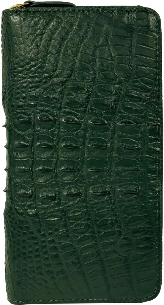 Этот длинный кошелек отличается премиальной цельнокроеной конструкцией центральной части, что является отличительной чертой крокодиловой кожи.. Задняя часть кошелька выполнена из кожи крокодила горбатого, известной как жемчужина кожи, и ее отличительной грубой текстуры.. Он сохраняет легкий блеск для сдержанного вида, а процесс старения, который придает коже уникальный характер, добавляет ему привлекательности.. Золотая молния добавляет нотку роскоши и обеспечивает плавное открытие и закрытие.. Четыре кармана для купюр разделяют купюры и квитанции для удобной организации. Шарм также изготовлен из крокодиловой кожи, что демонстрирует внимание к деталям.. Благодаря четырем открытым карманам, его также рекомендуется использовать для хранения важных квитанций и билетов.. Карманчики для карт имеют достаточную вместимость, вмещая поразительные 18 карт. Простой дизайн делает его унисекс и подходящим как для мужчин, так и для женщин.. Этот кошелек красивый, функциональный и прочный, что делает его полноценным изделием во всех отношениях.