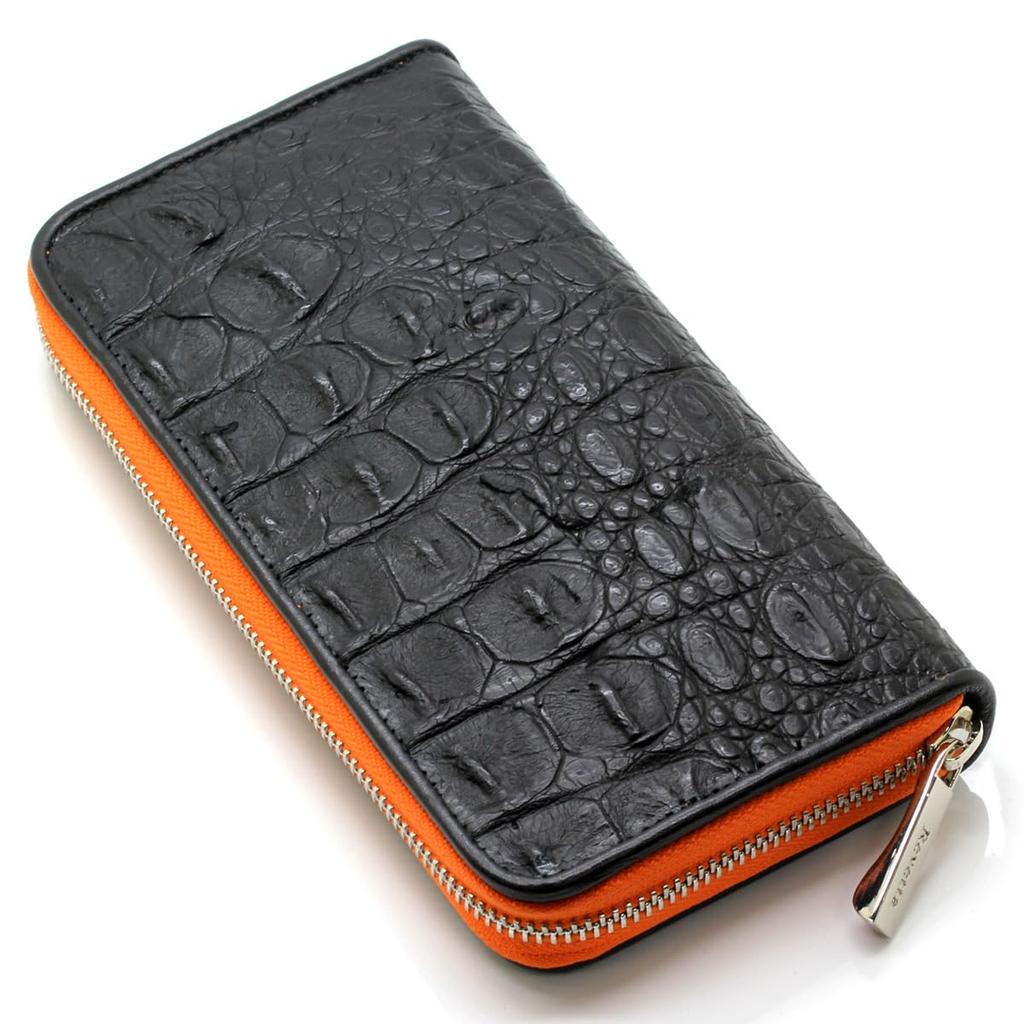 [Revetta] Мужской длинный кошелек из кожи крокодила, Черно-оранжевый, Изготовлен из цельного куска натуральной кожи с круглой молнией и матовой отделкой [244crw]