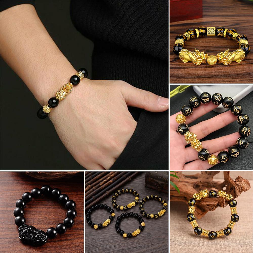 New Unisex Men Women Pixiu Attract Wealth Bracelets Wristband Good Luck Bangle Obsidian Stone Beads — купить товар онлайн с бесплатной доставкой по всему миру!