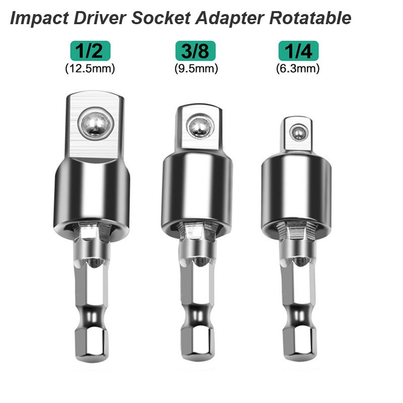 Impact Driver Socket Adapter 360 Degree Rotatable 1/4 3/8 1/2 Wrench Drill Hex to Square Male Converter Nut Electric ScrewDriver