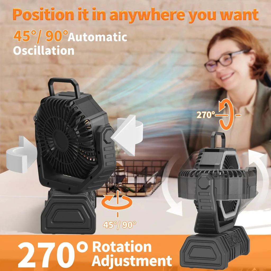 20000mAh High-Capacity Battery LED Light Camping Fan Movable Wireless Air Circulators Outdoor Ventilador with Hook