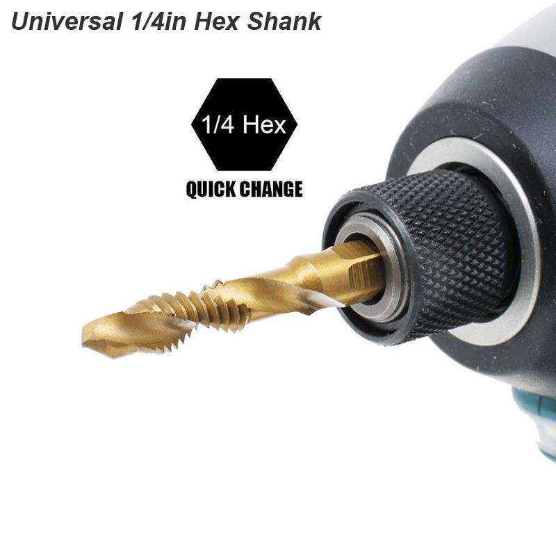 2. Hole tapping chamfering in one, easy to operate, hand drill, bench drill, hex chuck tapping machine available.